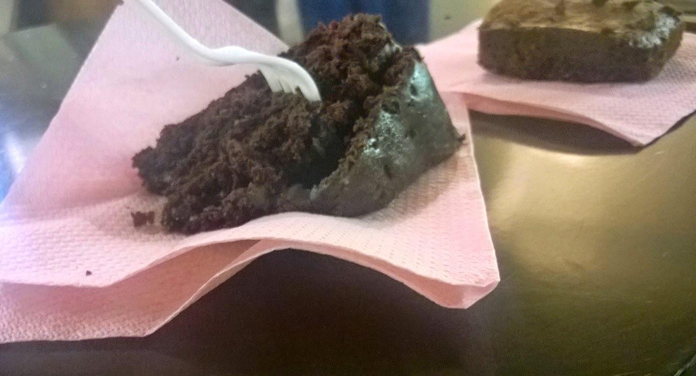 While sadly it was the only vegan option (Mr FtVs' non-vegan brownie pictured below), it still pleases me to see more and more vegan food getting on menus. And, for a £1 cake from a non-vegan eatery, I was impressed: