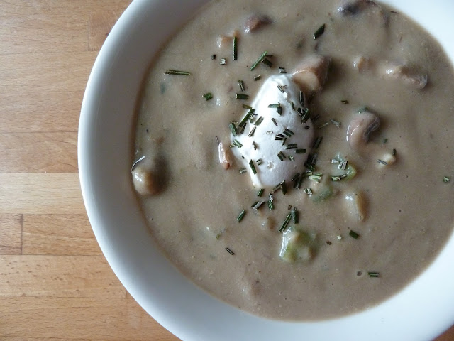 I must have something of a masochistic streak in me, because the other day when a box of mushrooms got delivered in my veg box, I decided that a cream of mushroom soup was exactly what I'd make with them.